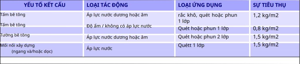 - Áp dụng cho bề mặt bê tông chịu áp lực hoặc không chịu áp lực được phê duyệt cho các công trình nước uống