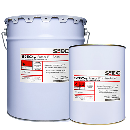 SpECtop Primer F1 thích hợp để tạo sự liên kết tuyệt vời giữa các bề mặt gốc xi măng và lớp nhựa epoxy SpECtop cho lớp phủ sàn và cũng như một lớp sơn lót cho vữa epoxy SpECbuild EM.